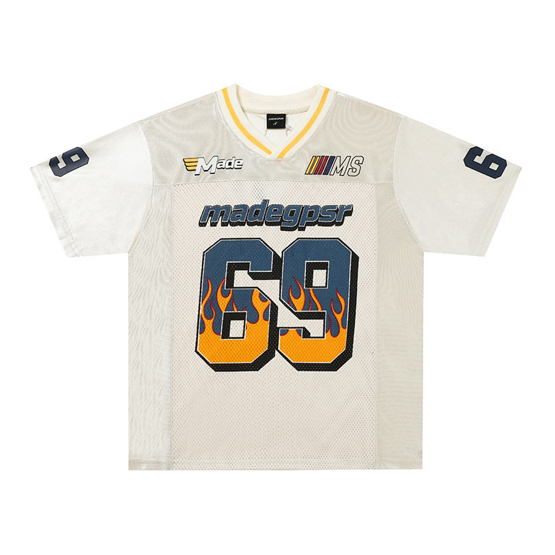 Vyriškas ir moteriškas madingas vasarinis laisvo kirpimo džersis su raidžių raštu
